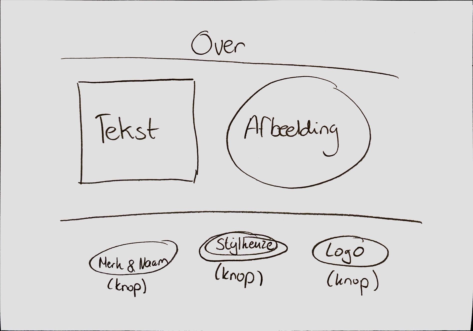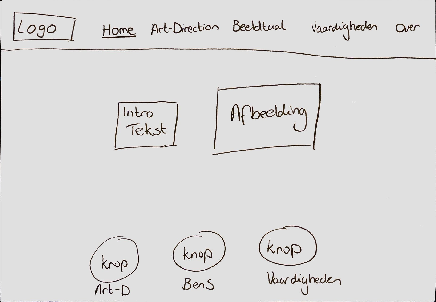 De knoppen op de website zijn zelfgemaakte afbeeldingen. Ze zijn in meeste gevallen in vorm van herkenbare vlekken, om hierbij weer de nadruk op mijn merk te leggen. In deze vlekken staat de tekst van de bijpassende knop die vervolgens naar de juiste pagina doorverwijst. Er bestaan ook nog andere knoppen op mijn website, namelijk de knoppen onderaan mijn home-pagina. De knoppen zijn bijpassend afgebeeld naar de juiste vakken, zo heb je voor art-direction een kwast, voor beeldtaal & storytelling een camera en voor vaardigheden een moersleutel met een schroef. Deze symbolen zijn met de hand getekend en vervolgens geïmporteerd bij illustrator.