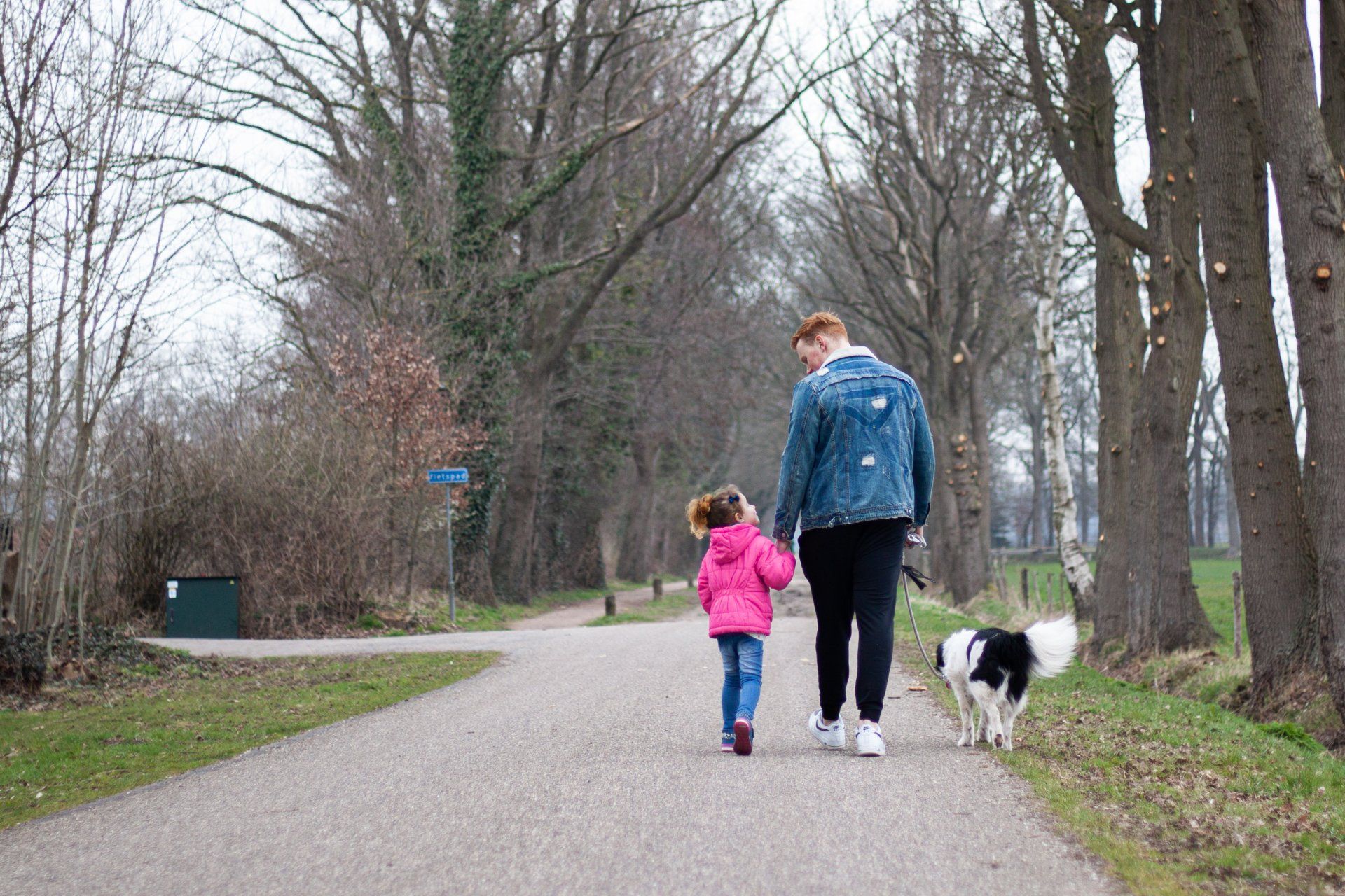 Roze kleur voor meisje en blauwe kleur voor jongen. Kleurrijke, frisse foto om de lichte en kleurrijke van Jelle te benadrukken. Door perspectief en de diagonale lijnen die allemaal naar de twee personen lopen, wordt er nog meer aandacht getrokken naar Jelle en zijn nichtje.