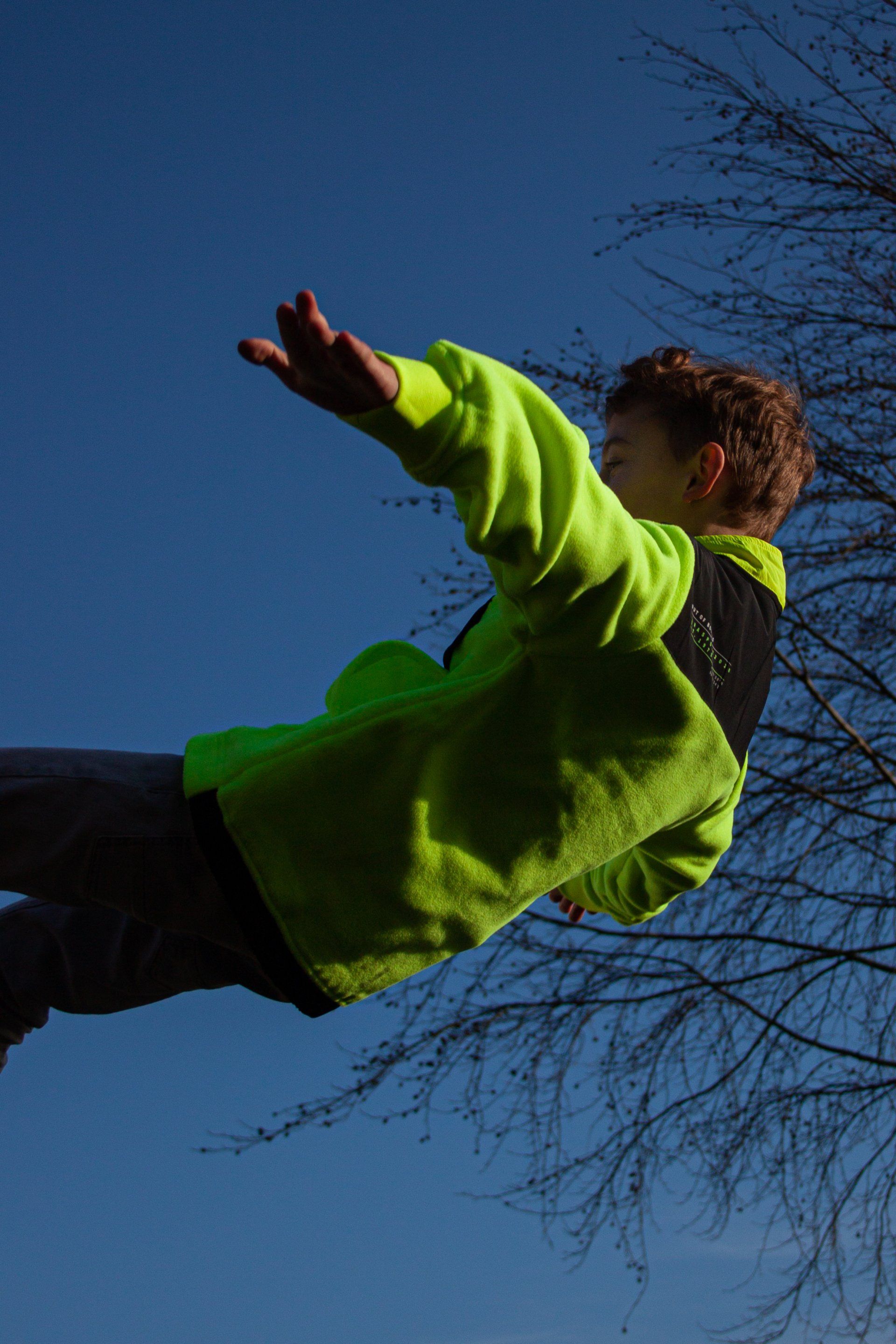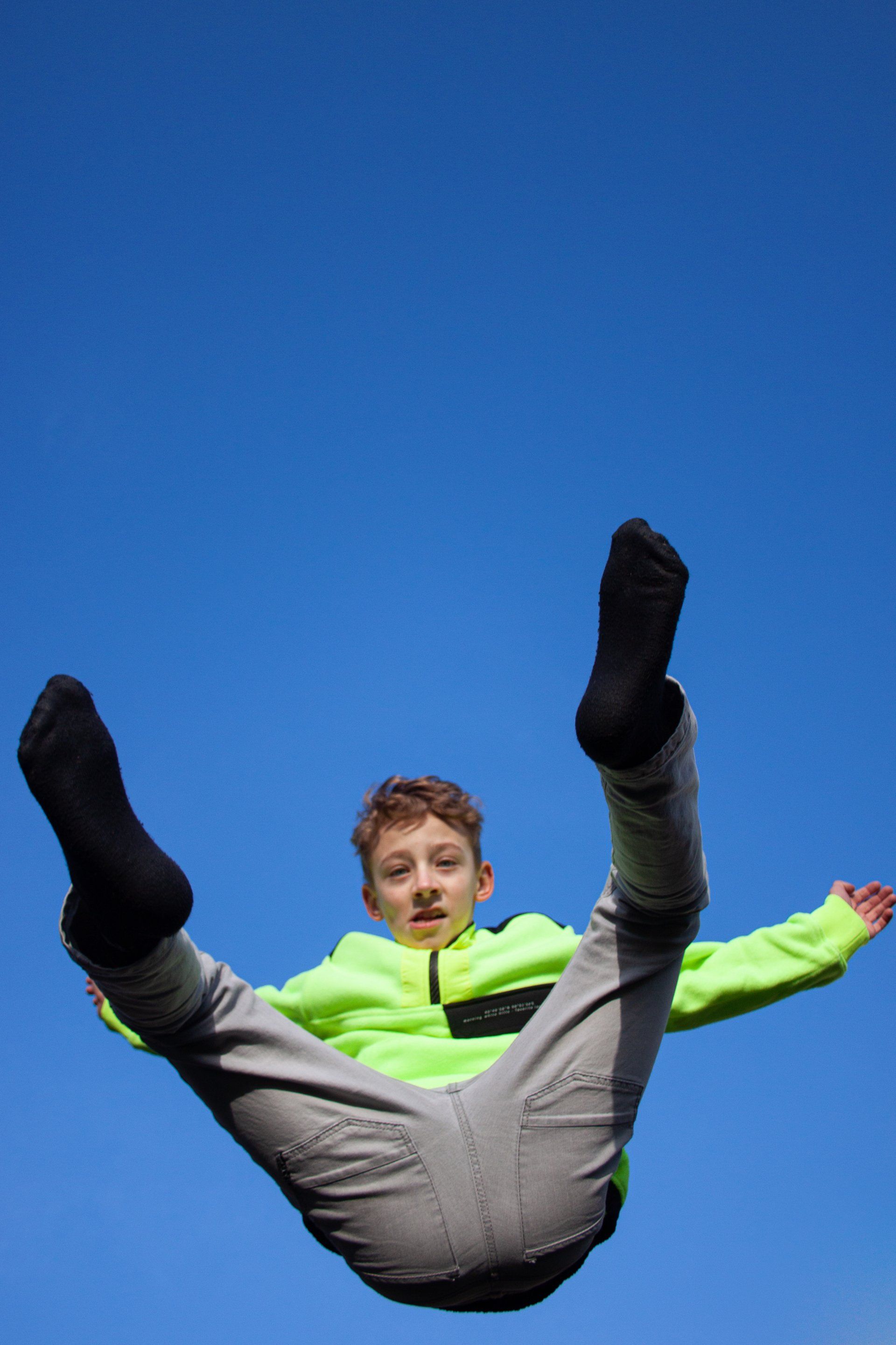 Deze foto's heb ik gemaakt met een korte sluitertijd, zodat ik de poses 'bevroren' kon vastzetten. Ik heb gewacht tot een zonnige/half bewolkte dag om deze foto's te maken zodat ik genoeg licht zou hebben. Om te experimenteren heb ik geprobeerd om de foto's uit verschillende hoeken en perspectieven te maken. Hier links en onder zijn de beste drie foto's te zien. Ik heb geprobeerd om de jongen zo hoog mogelijk af te beelden, zodat het lijkt alsof hij veel hoger in de lucht is dan in de werkelijkheid.