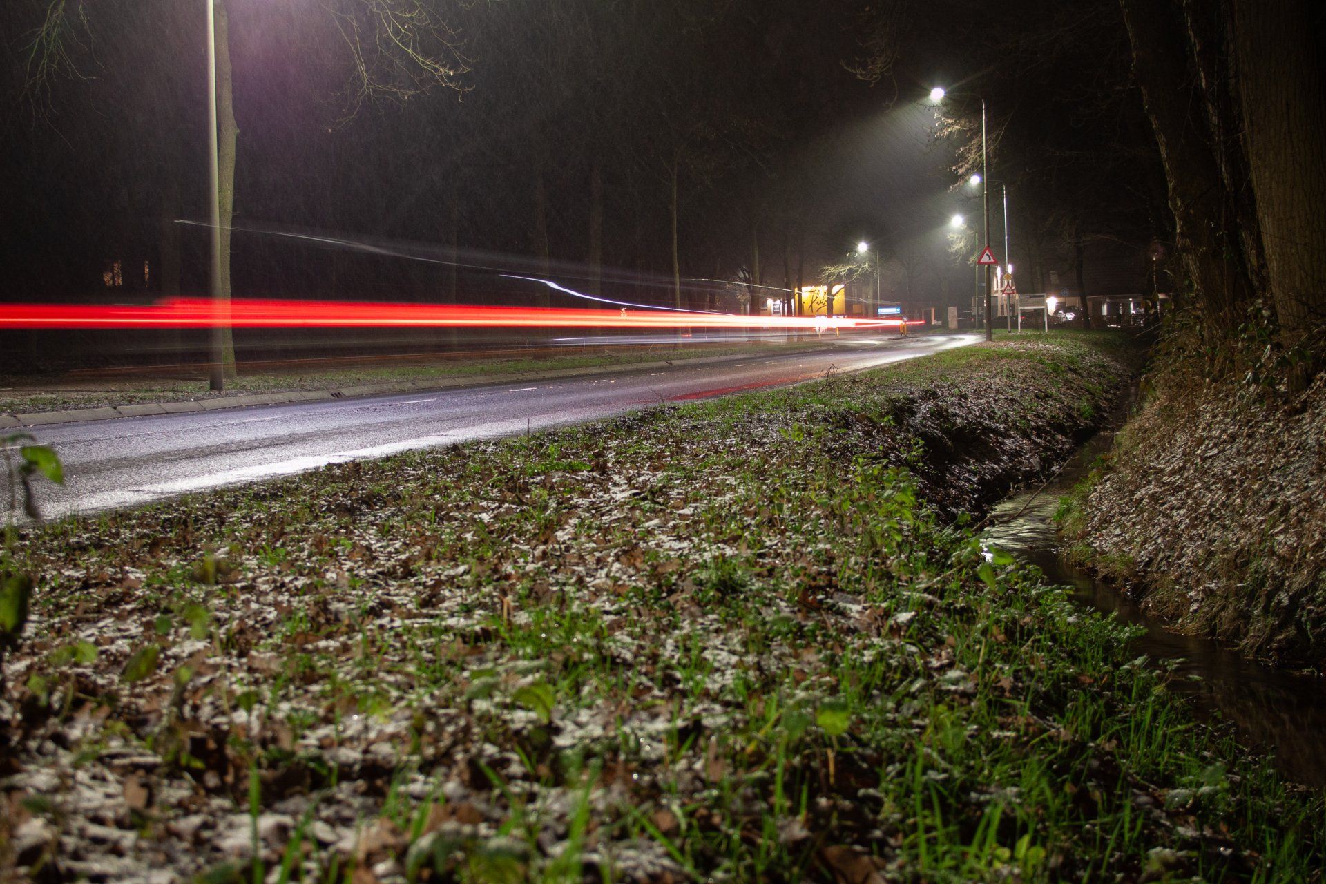 Beweging vastleggen vond ik persoonlijk een hele lastige opdracht. Daarom heb ik besloten om extra experimenten uit te voeren en te oefenen met een lange sluitertijd. Ik ging in de avond langs de straat staan en probeerde een auto in beweging vast te leggen. Dit is uiteindelijk ook gelukt. Wat ik wel lastig vond waren de lampen langs de weg die extra licht op de weg schenen.