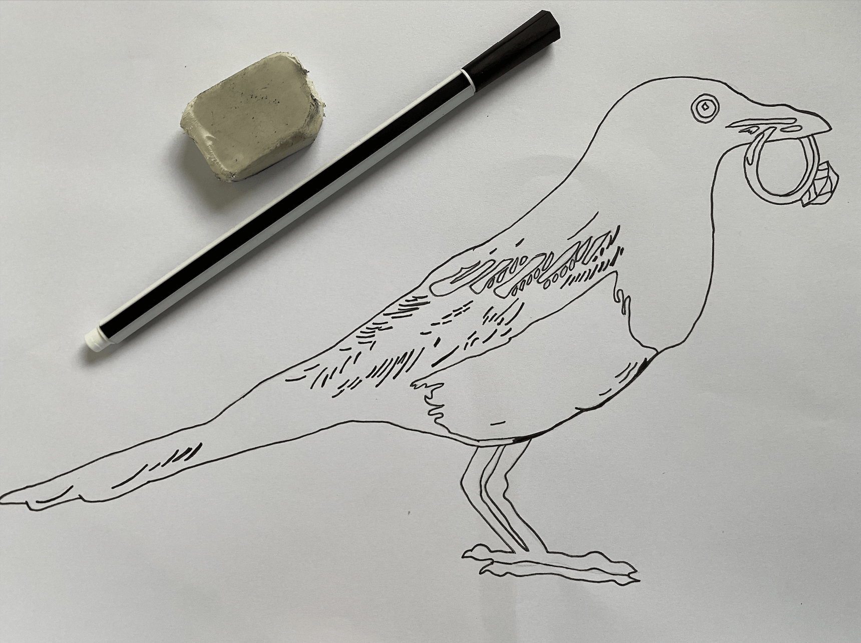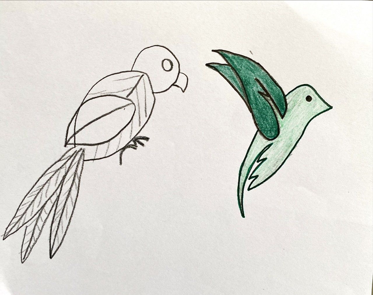 Als eerst heb ik een tekening gemaakt van mijn idee. Het is een mens met een vogelhoofd om hiermee vergelijking tussen mens en vogel toe te passen.