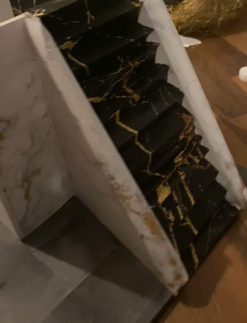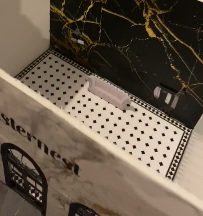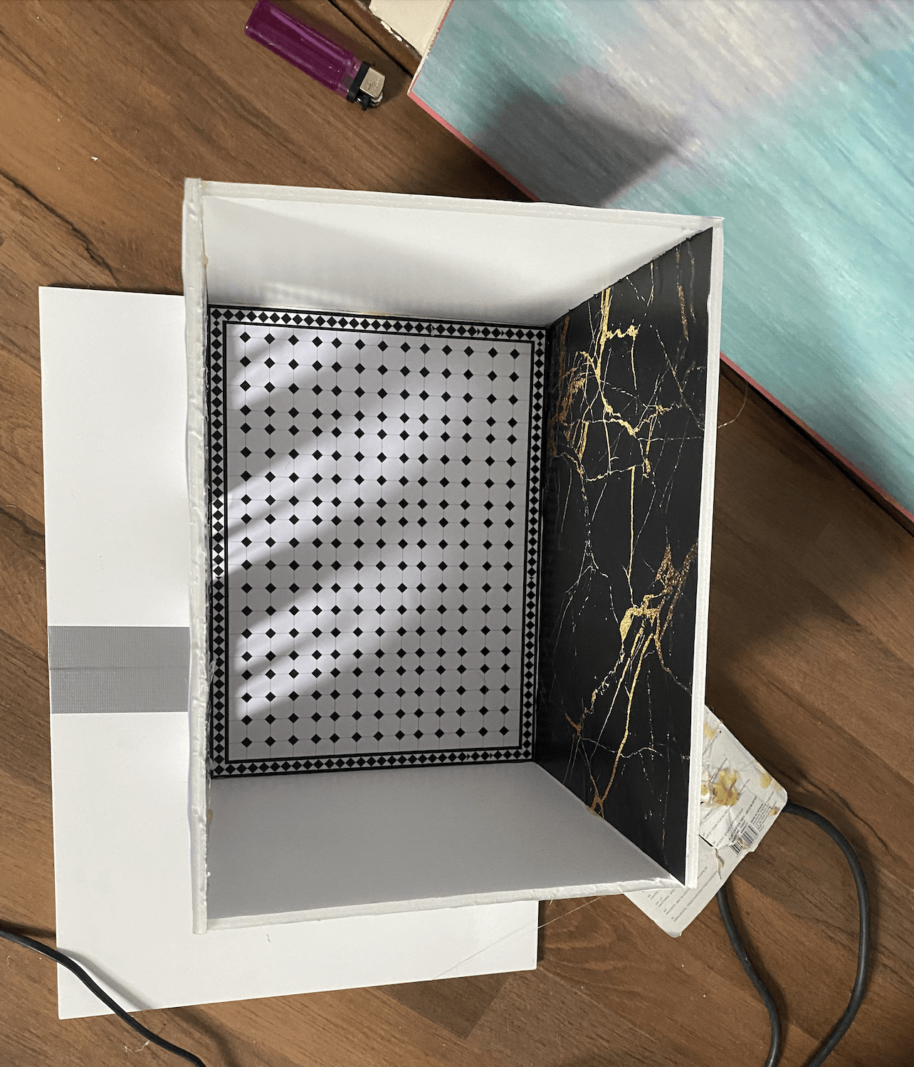 Voordat ik de andere muren had vastegeplakt, heb ik daarvoor nog de vloer en de muur beplakt.
