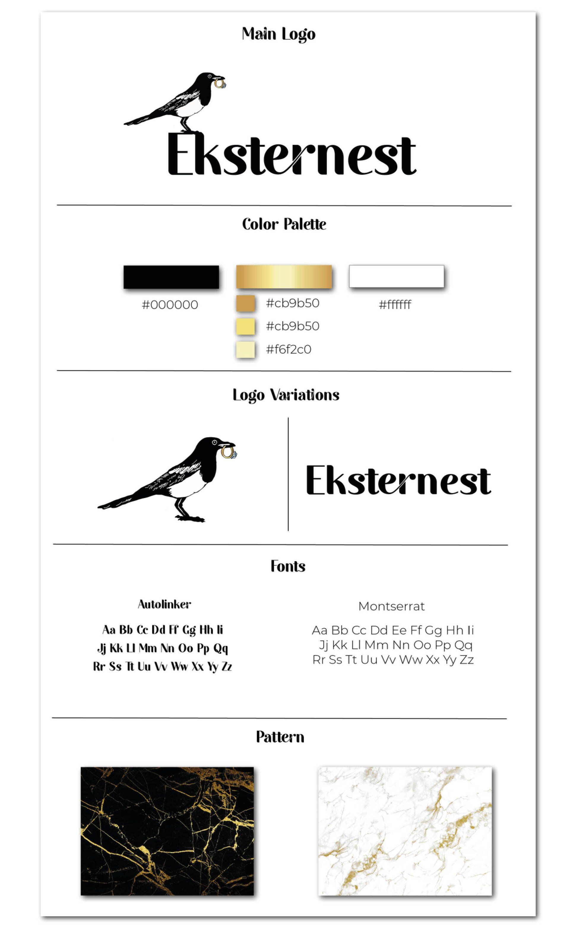 Ik heb er voor 3 kleuren gekozen, namelijk zwart en wit die afkomstig zijn van de kleuren van een ekster. Maar ook goud om het merk meer tot leven te brengen. Daarbij glimt goud mooi en dat wil een ekster graag hebben. Ook heeft gouden kleur een luxe en dure uitstraling.